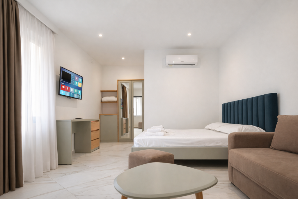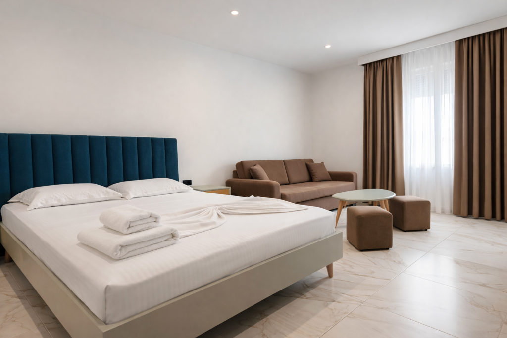 DOMI Drymades is a hotel located on the stunning shores of Drymades Beach, Albania, offering a perfect blend of modern elegance and Mediterranean charm. Surrounded by the crystal-clear waters of the Ionian Sea and lush green hills, DOMI Drymades provides serene accommodations with breathtaking sea or mountain views, creating an ideal retreat for travelers seeking relaxation and adventure.